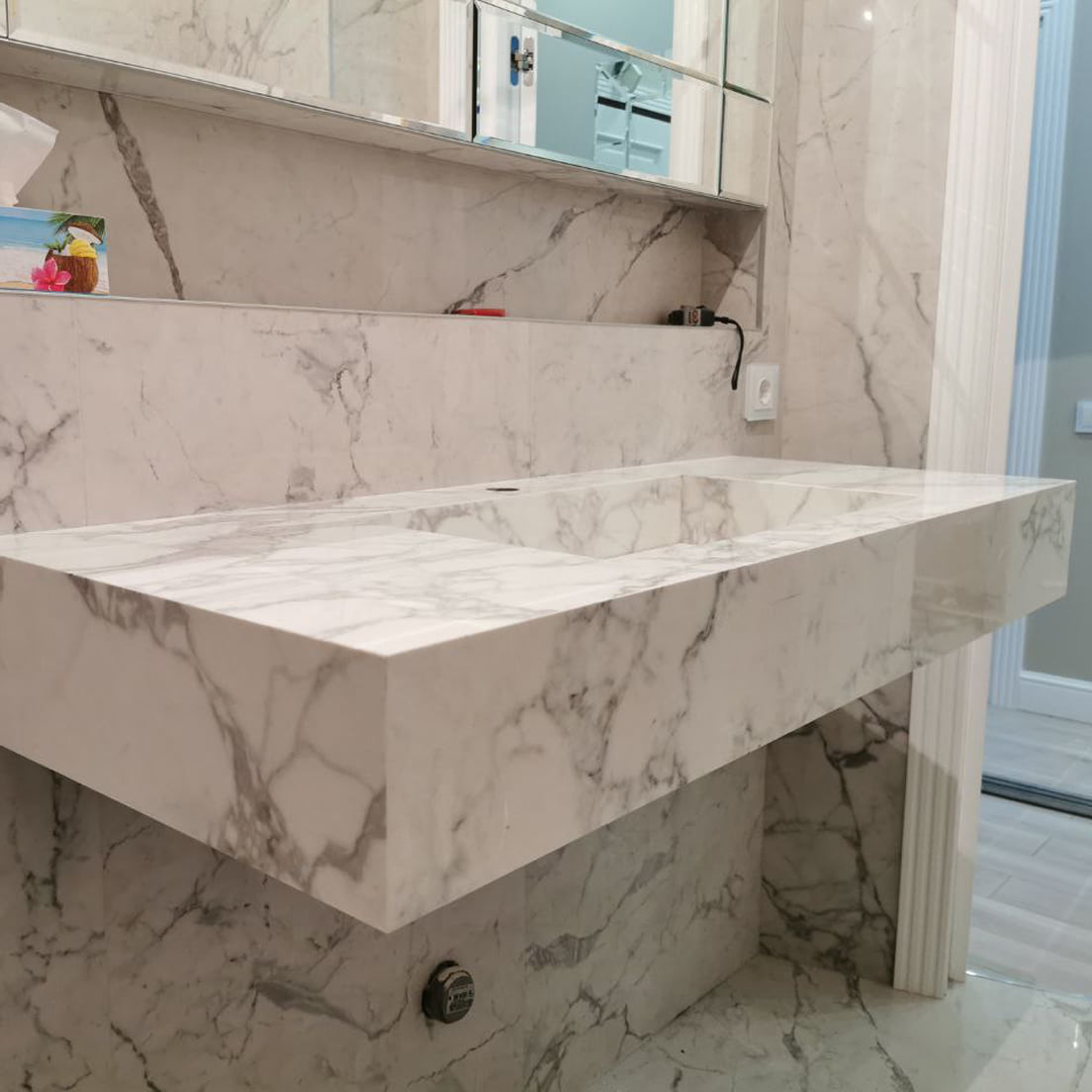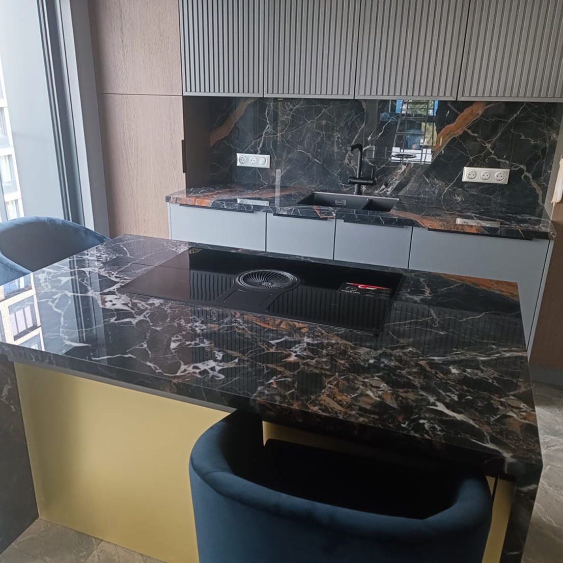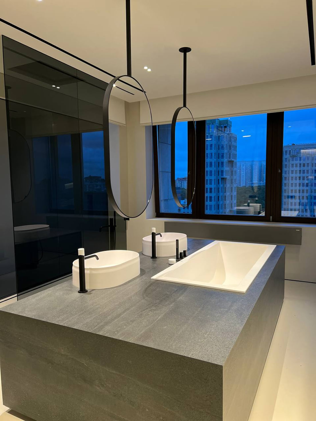 Для меня принципиально важно доверие каждого клиента. Поэтому я лично контролирую ход работ на всех этапах — от подбора слябов керамогранита до финального монтажа готового изделия.