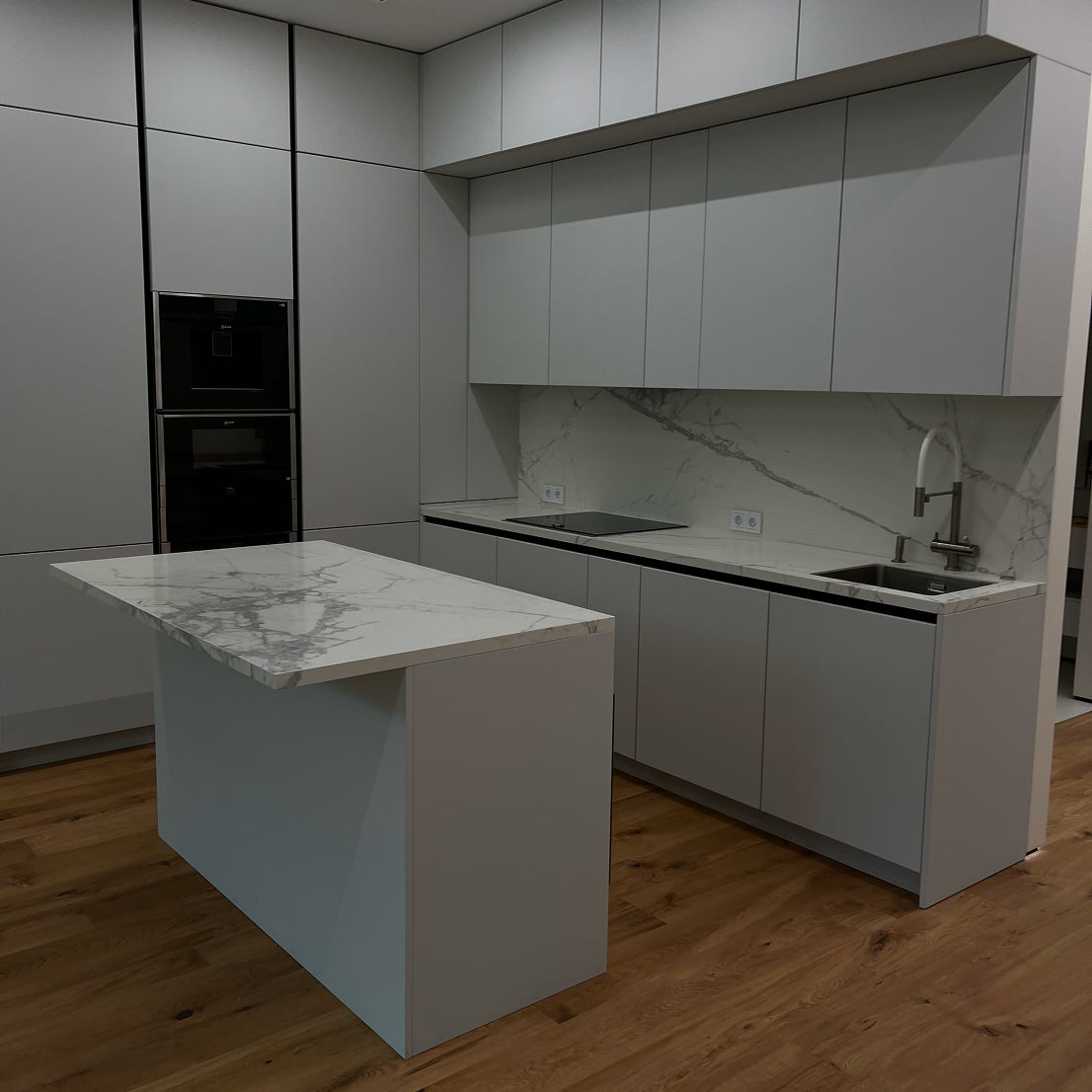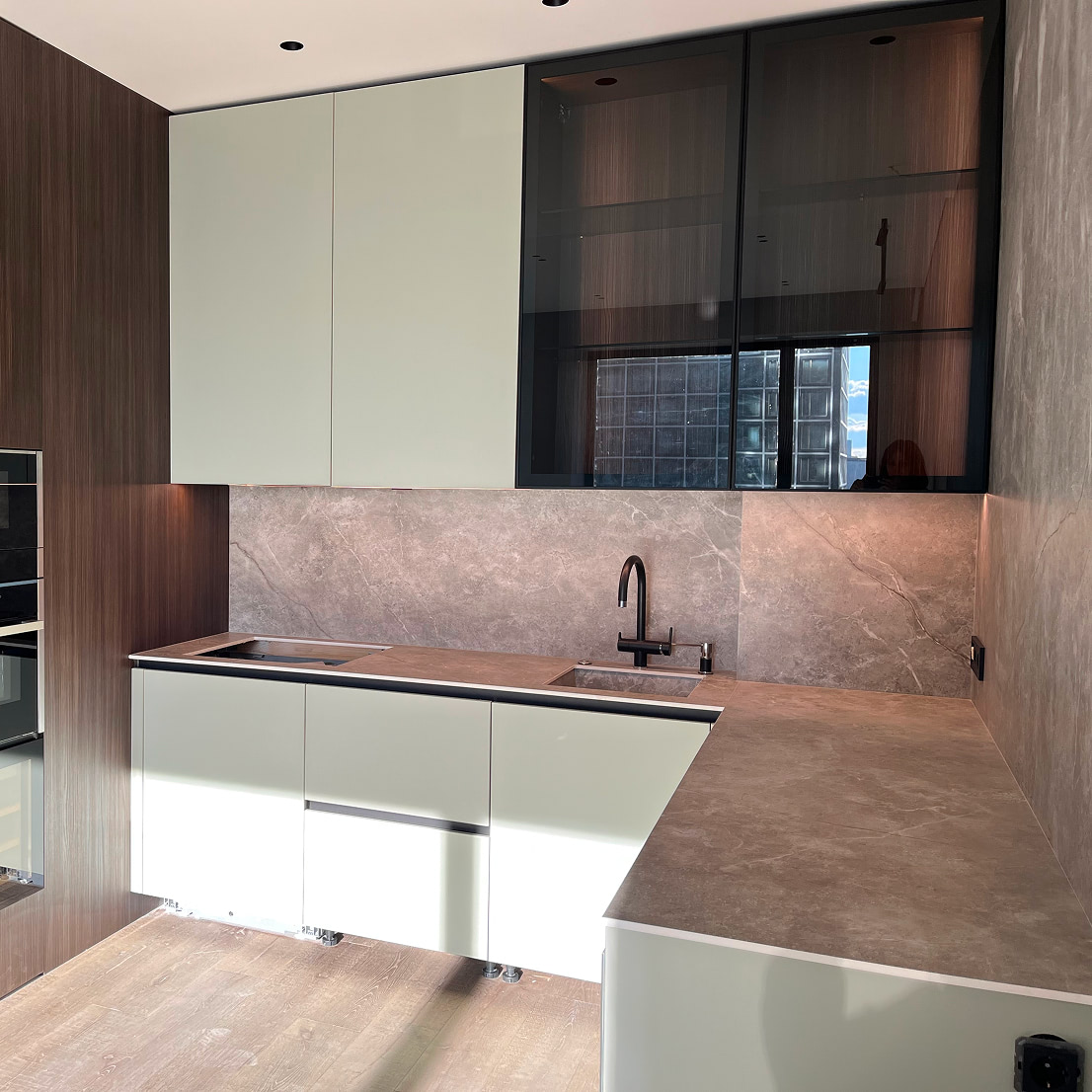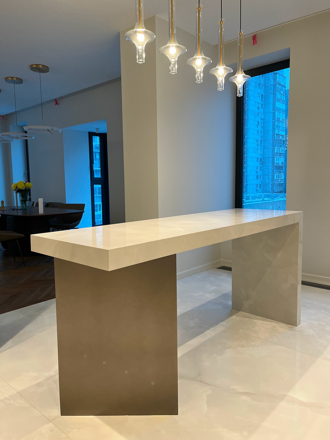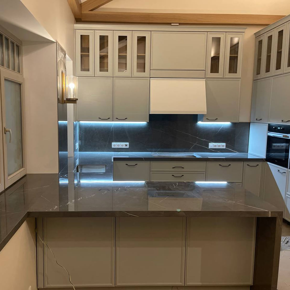 Для меня принципиально важно доверие каждого клиента. Поэтому я лично контролирую ход работ на всех этапах — от подбора слябов керамогранита до финального монтажа готового изделия.