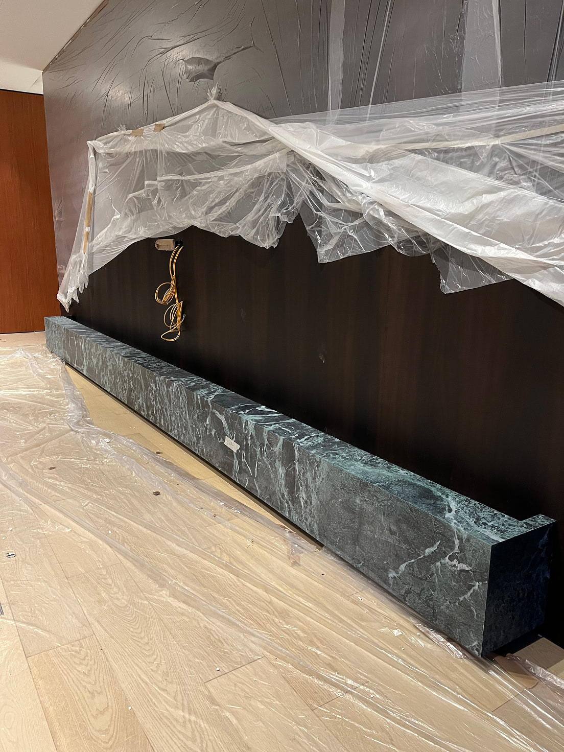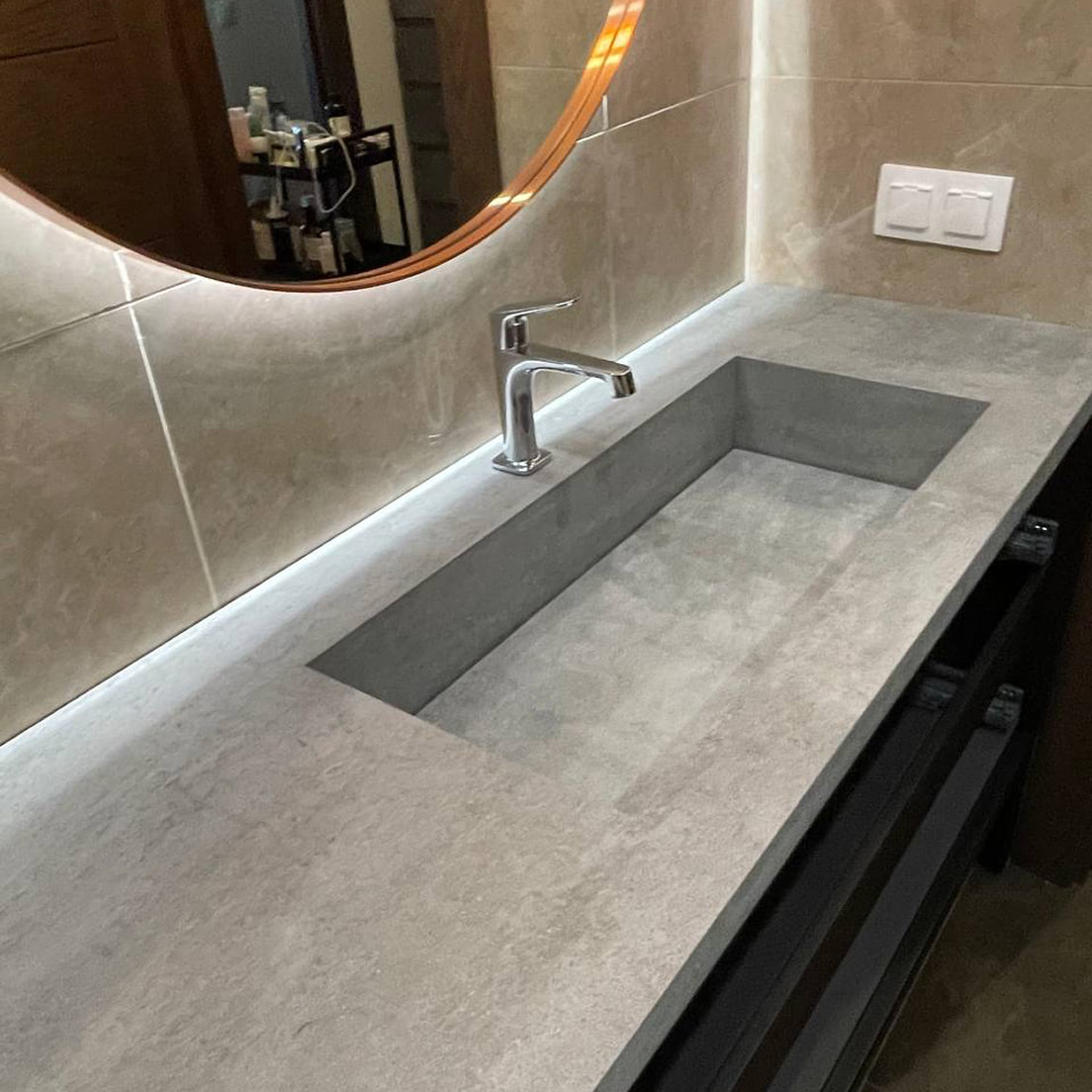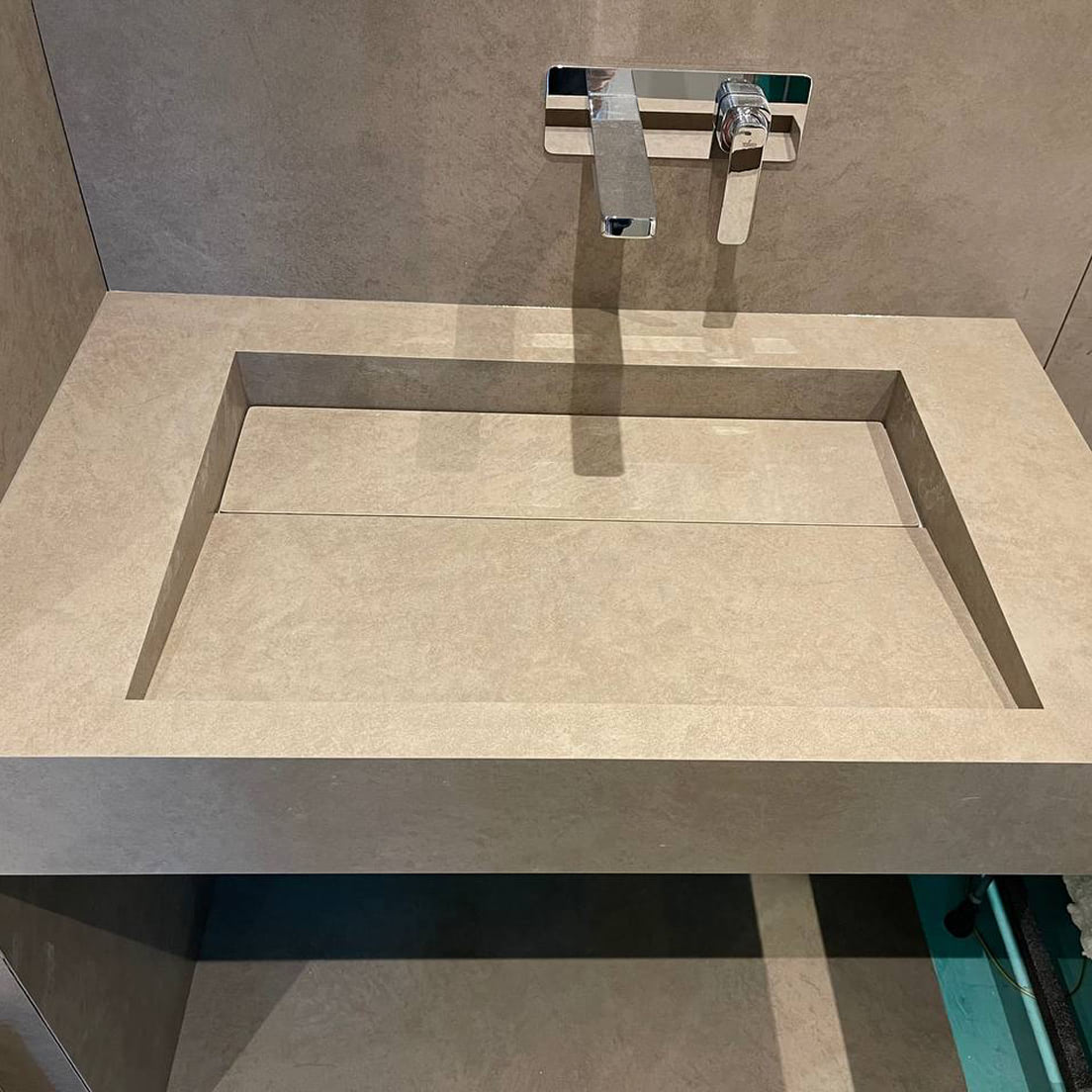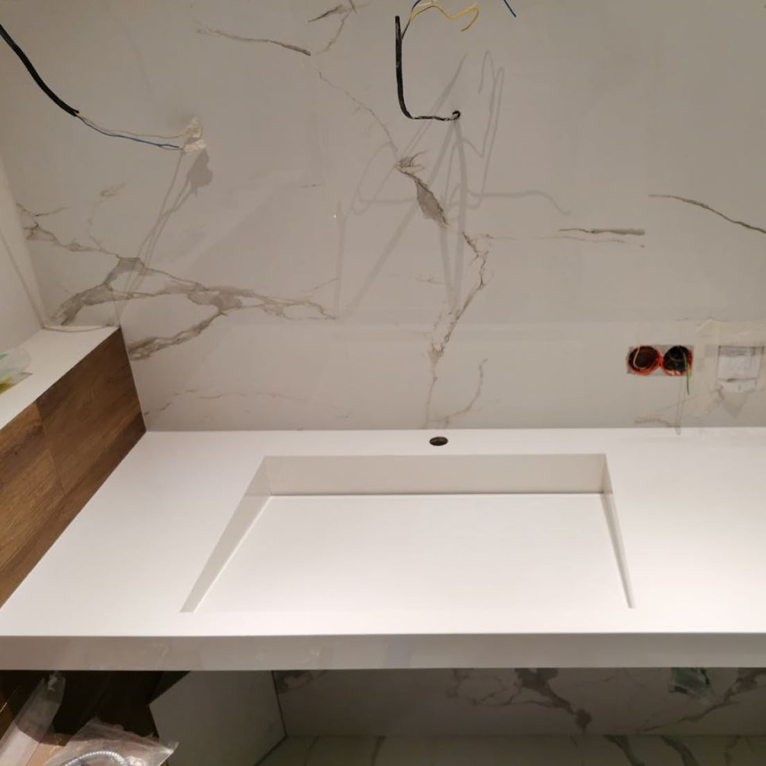 Нет, швы практически незаметны. Мы используем технологию запиловки краев под 45 градусов. Детали склеиваются специальным двухкомпонентным составом (эпоксидной смолой), который мы колеруем точно в цвет прожилок и фона камня. После финальной шлифовки и полировки стык выглядит как единый монолитный блок, он абсолютно герметичен и не ощущается тактильно.